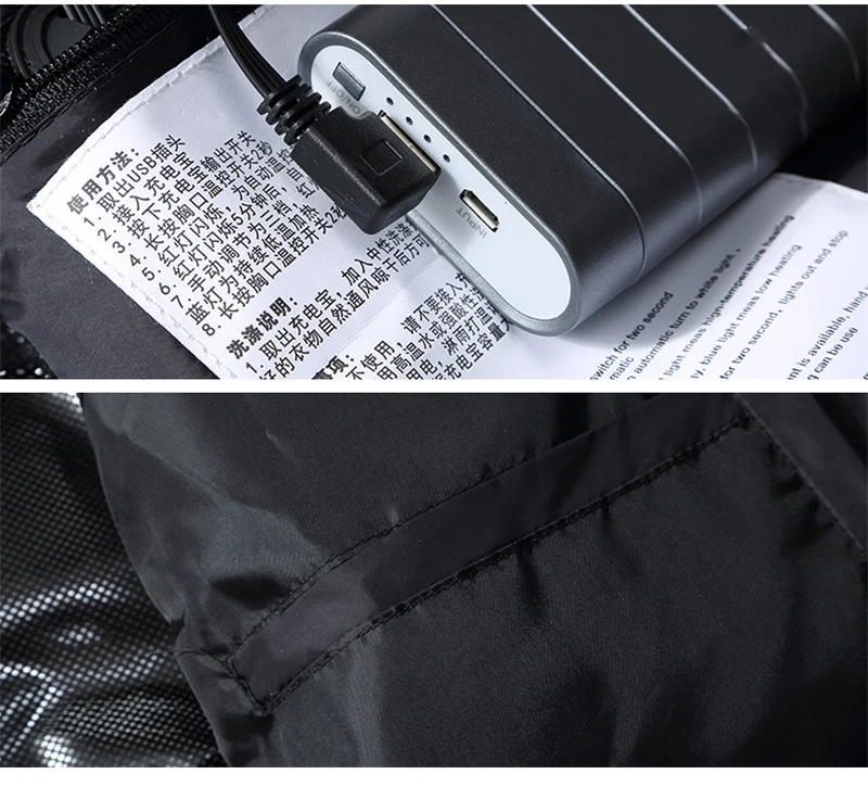 Washable 8 Zone Men Customized Black Bubble Winter Heat Battery Usb Heating Electric Heated Jacket